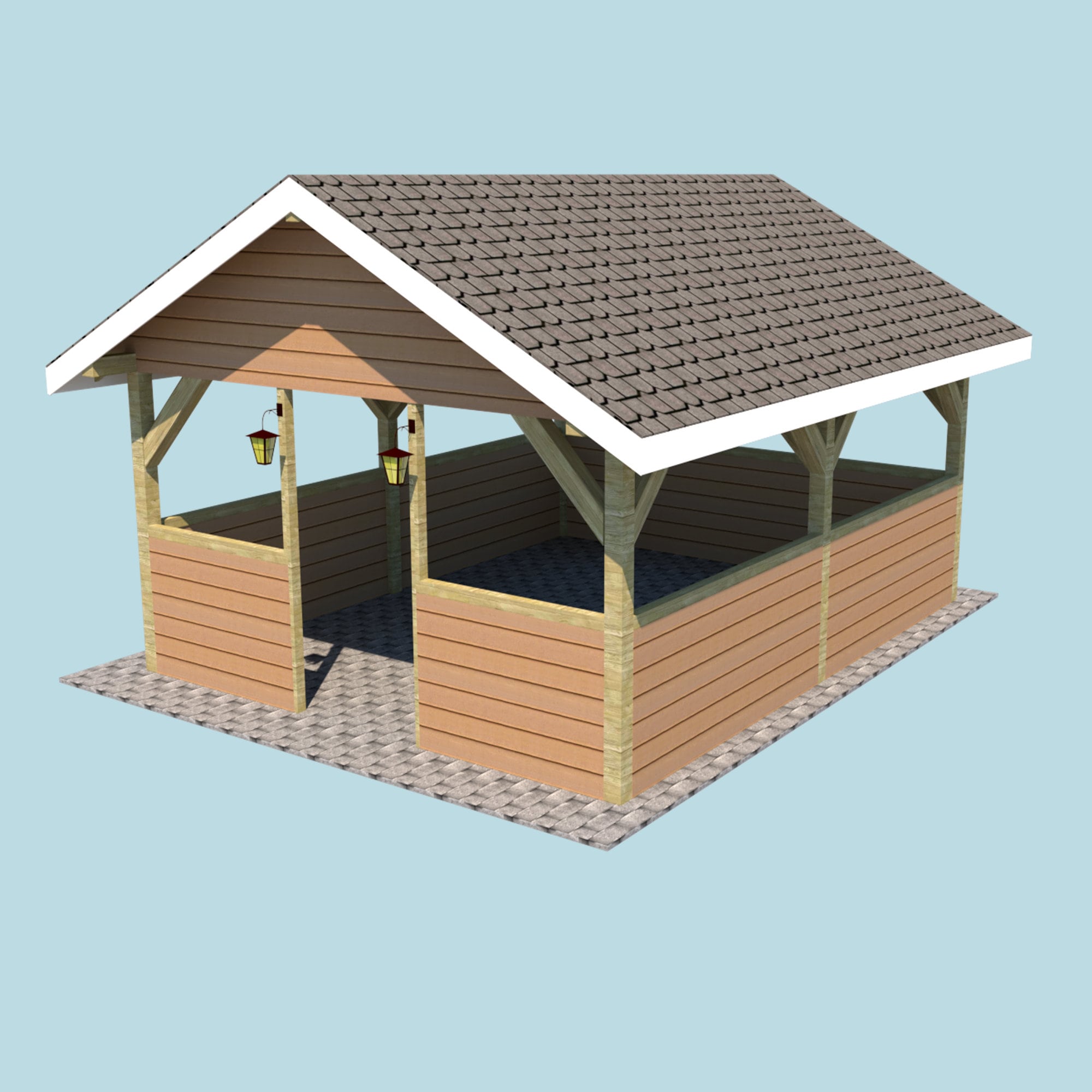 16x20 Gable Pavilion Plans With Half Walls Diy Wooden Etsy