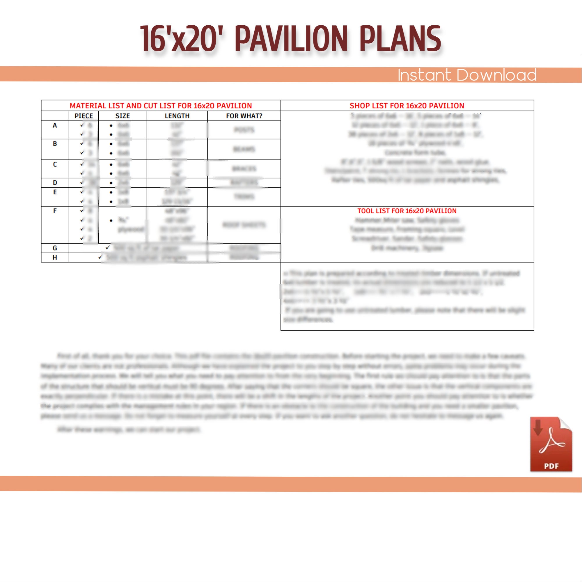 Pavilion Plans 16x20 Etsy
